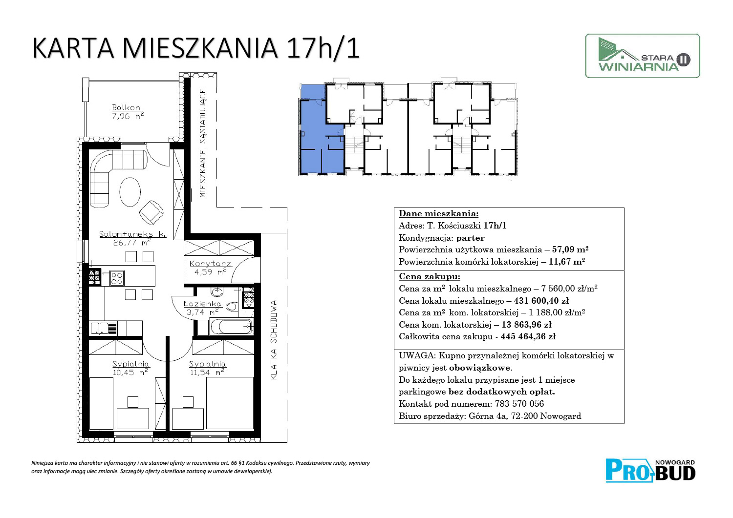 LISTA MIESZKAŃBudynek 17hParter Mieszkanie nr 1, parter, pow. 57,09 m2, Status (wolne), 445 464,36 zł + Mieszkanie nr 2, parter, pow. 44,94 m2, Status (zajęte), 352 327,32 zł Mieszkanie nr 3, parter, pow. 57,09 m2, Status (zajęte), 444 739,68 zł Mieszkanie nr 10, parter, pow. 57,09 m2, Status (wolne), 445 464,36 zł + Mieszkanie nr 11, parter, pow. 44,94 m2, Status (zajęte), 352 885,68 zł Mieszkanie nr 12, parter, pow. 57,09 m2, Status (zajęte), 449 028,36 1 Piętro Mieszkanie nr 4, 1 pietro, pow. 56,99 m2, Status (zajęte), 448 272,36 zł Mieszkanie nr 5, 1 piętro, pow. 44,74 m2, Status (zajęte), 352 894,32 zł Mieszkanie nr 6, 1 piętro, pow. 56,99 m2, Status (zajęte), 449 626,68 zł Mieszkanie nr 13, 1 piętro, pow. 56,99 m2, Status (zajęte), 449 626,68 zł Mieszkanie nr 14, 1 piętro, pow. 44,74 m2, Status (zajęte), 350 815,32 zł Mieszkanie nr 15, 1 piętro, pow. 56,99 m2, Status (zajęte), 444 708,36 zł 2 Piętro Mieszkanie nr 7, 2 pietro, pow. 56,90 m2, Status (wolne), 447 449,40 zł + Mieszkanie nr 8, 2 piętro, pow. 44,64 m2, Status (zajęte), 350 617,68 zł Mieszkanie nr 9, 2 piętro, pow. 56,90 m2, Status (wolne), 444 027,96 zł + Mieszkanie nr 16, 2 piętro, pow. 56,90 m2, Status (zajęte), 444 823,92 zł Mieszkanie nr 17, 2 piętro, pow. 44,64 m2, Status (wolne), 350 617,68 zł + Mieszkanie nr 18, 2 piętro, pow. 56,90 m2, Status (wolne), 447 449,40 zł +
